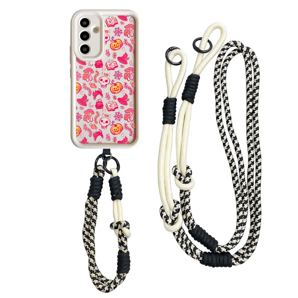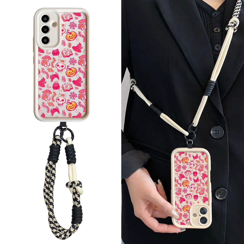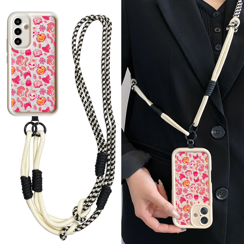 Crossbody Strap Necklace Lanyard Case for Samsung S25 Ultra S24 S23 S22 S21 Plus S23 S24 FE Cute Halloween Ghost Phone Cover