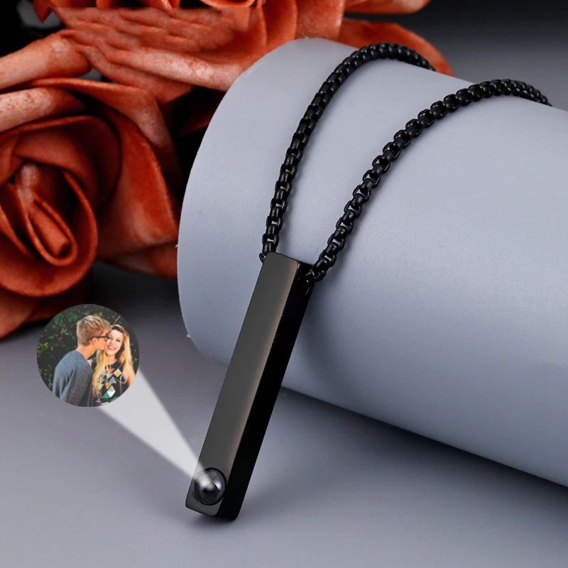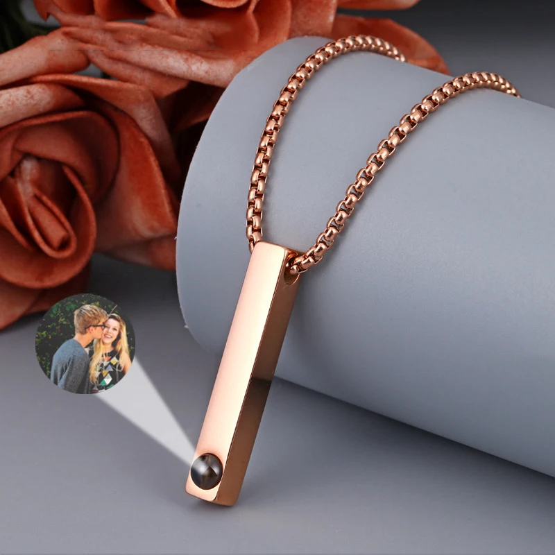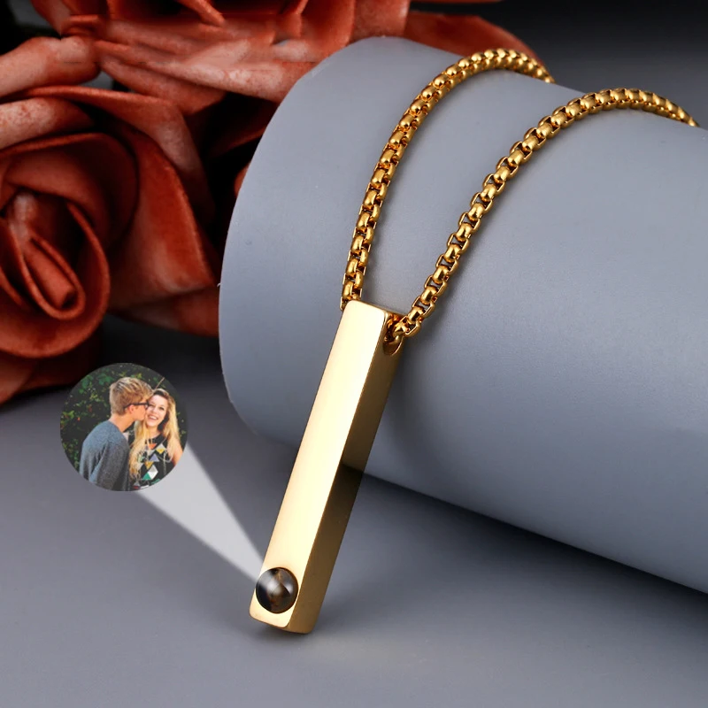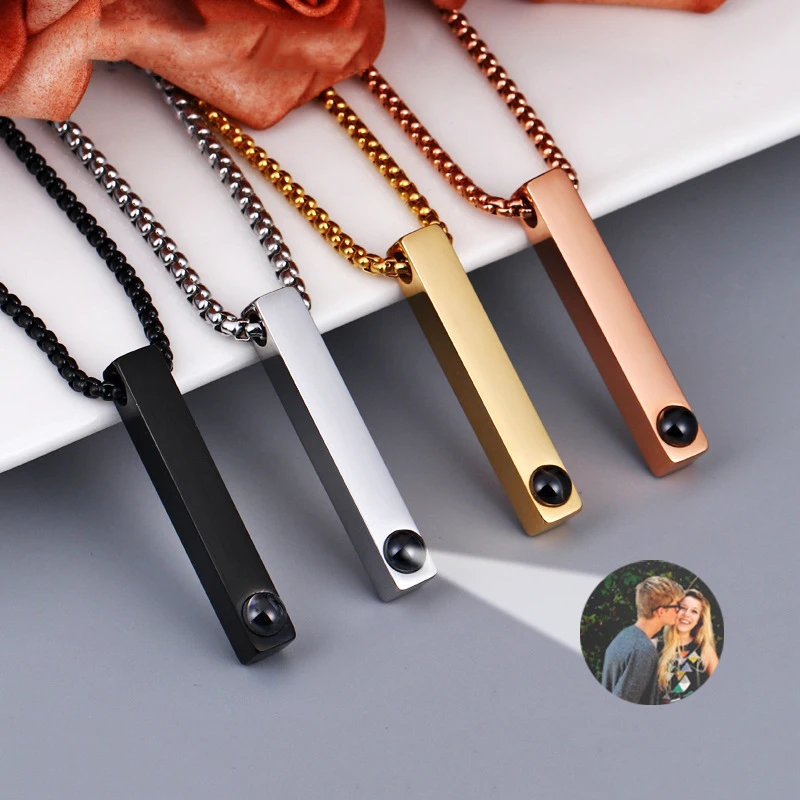 Personalized Photo Projection Necklace Custom Picture Stainless Steel Bar Pendant for Women Men Jewelry Birthday Christmas Gift