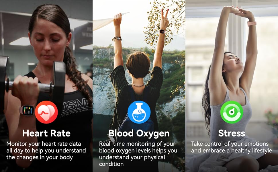 ๐๐๐๐ซ๐ญ ๐๐๐ญ๐ ๐๐จ๐ง๐ข๐ญ๐จ๐ซ๐ข๐ง๐ : The smart watch has a built-in upgraded heart rate sensor. You can set up continuous heart rate monitoring in APP, which can record data for 24/7. When the heart rate is too high, the watch will alert you with a high heart rate warning.