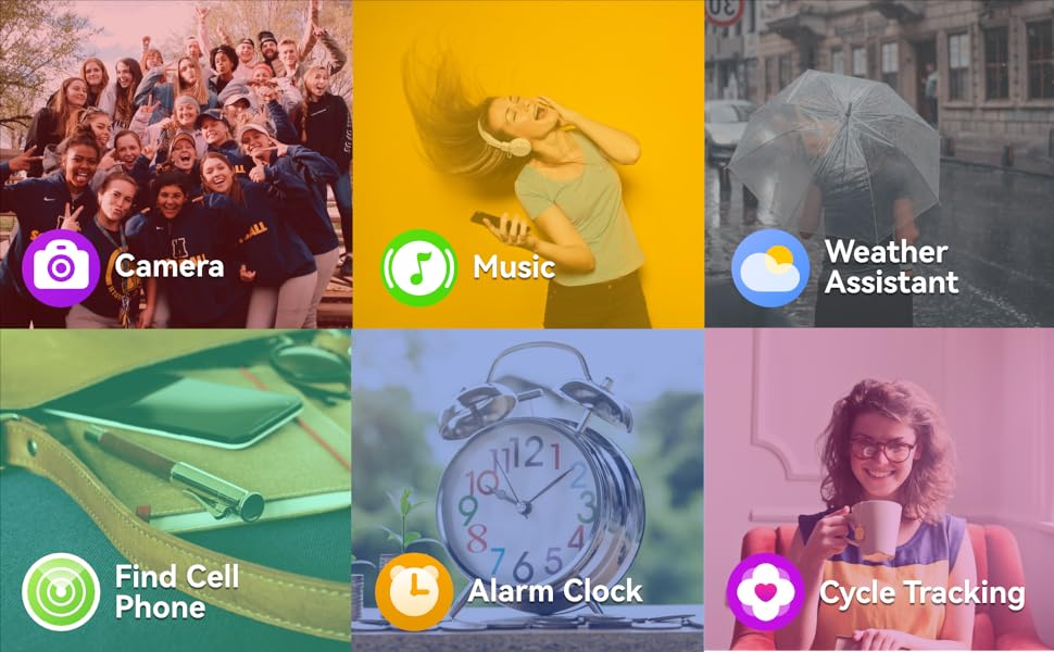 S๐ก๐ฎ๐ญ๐ญ๐๐ซ: You can take remote photos through the watch with app, so you no longer have to struggle with holding your phone to take pictures. Enjoy taking photos with your family, friends, and loved ones.